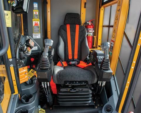 La cabine de la TCi 822E a connu des améliorations significatives en termes de confort et de commodité pour l’opérateur. Les cabines TCi offrent un espace de travail exceptionnellement robuste, silencieux et confortable. Le nouveau siège à suspension pneumatique et action parallèle est plus large qu’avant, pour plus de confort. Le dossier, entièrement ajustable, s’incline. Il est muni d’un réglage de l’angle et de l’extension, ainsi que d’un support lombaire. Le chauffage et la ventilation intégrés garantissent le confort de l’opérateur, qu’elle que soit la météo. Les espaces de rangements sont nombreux.
